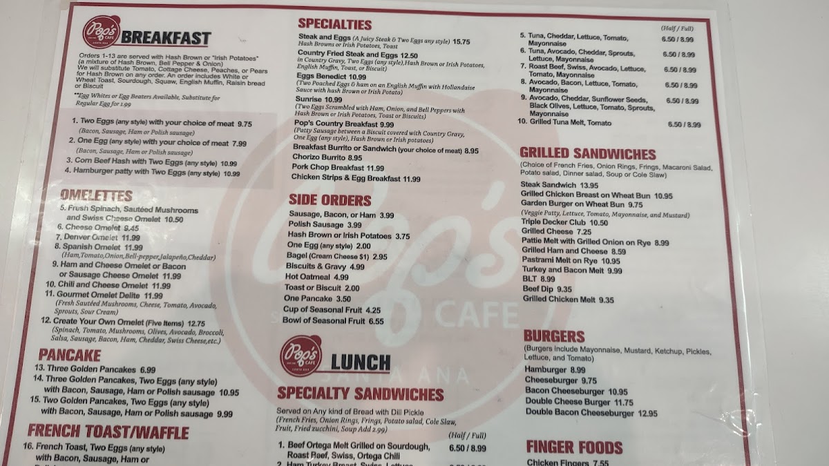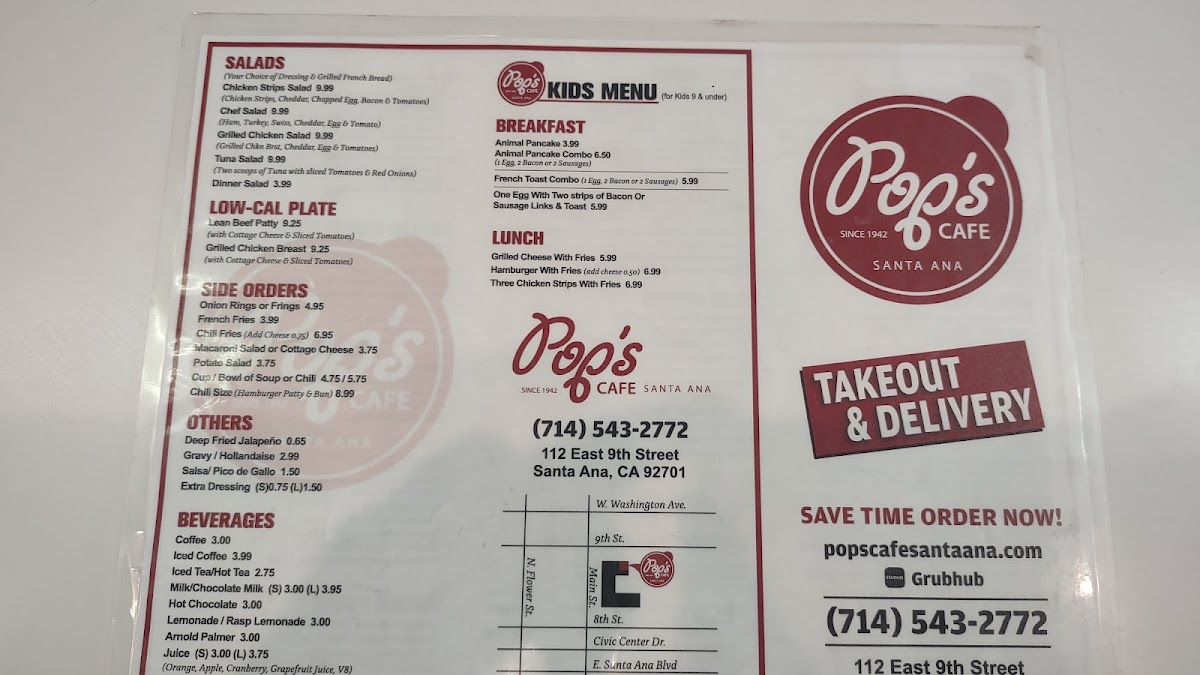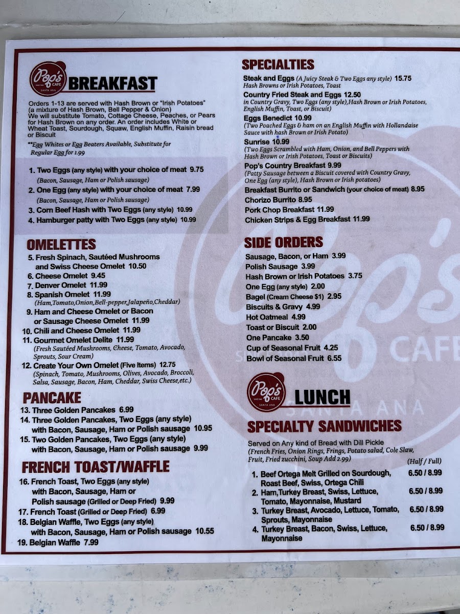 Pop's Cafe Santa Ana Menu (2025 Update)